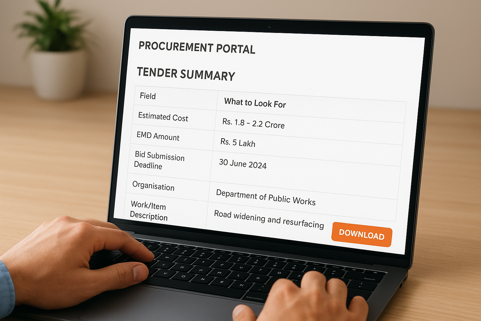 Never download full tender documents before confirming the basic eligibility fields on the summary page first.