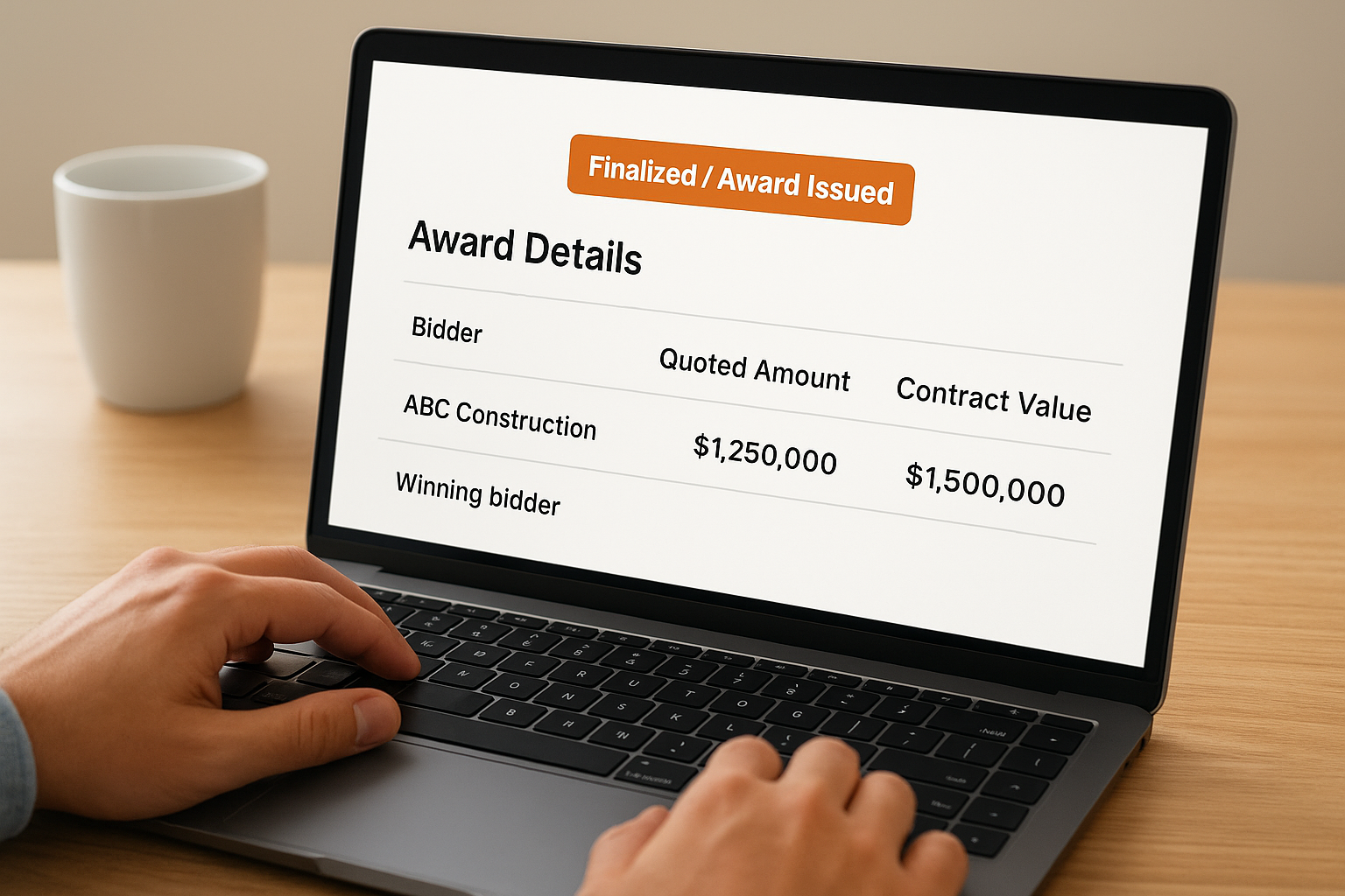 Published results also depend on the tender's current stage in the workflow. A tender that has opened bids but not yet issued an award will show bid values without a confirmed winner. One that is fully finalized will carry a work order or purchase order number attached to the record. Knowing which stage you are looking for prevents you from misreading an incomplete result as a final outcome, which is a common error when BD teams are tracking multiple tenders at once.