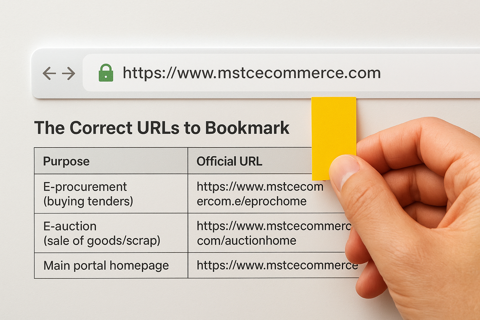 Always verify the URL begins with "https://www.mstcecommerce.com" before entering any credentials or payment details.