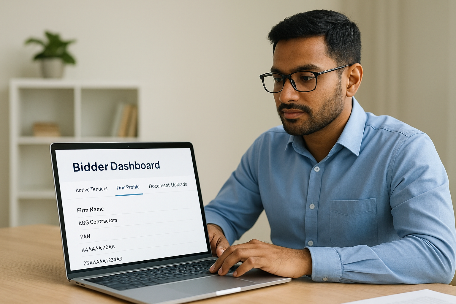 Your first login lands you on the bidder dashboard, where you'll see tabs for active tenders, your firm profile, document uploads, and notification preferences. Before you search for any tender, take a few minutes to confirm that your firm name, PAN, GSTIN, and bank account details all display correctly under the profile section. Any mismatch between your profile data and your submitted documents can cause a bid to get rejected at the eligibility stage.