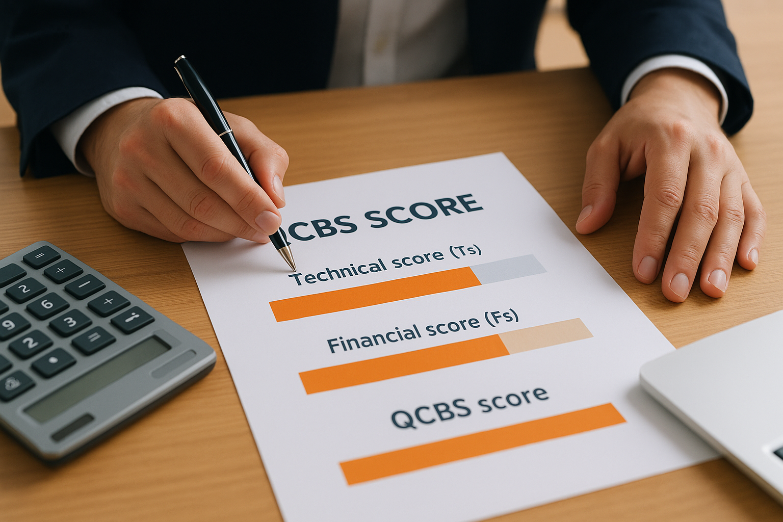 QCBS does not automatically reward the cheapest bid. It rewards the best combined score, which means a firm quoting 15% above the lowest price can still win if its technical score is high enough.