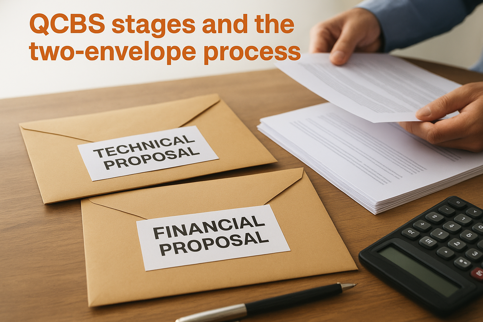 Every QCBS procurement follows a structured sequence designed to prevent your financial offer from influencing the technical evaluators. The contracting authority separates the process into two distinct stages, each with its own submission, evaluation, and scoring step. You submit both technical and financial proposals simultaneously, but sealed in separate envelopes. The financial envelope stays locked until the technical evaluation is fully complete and scores are officially recorded.