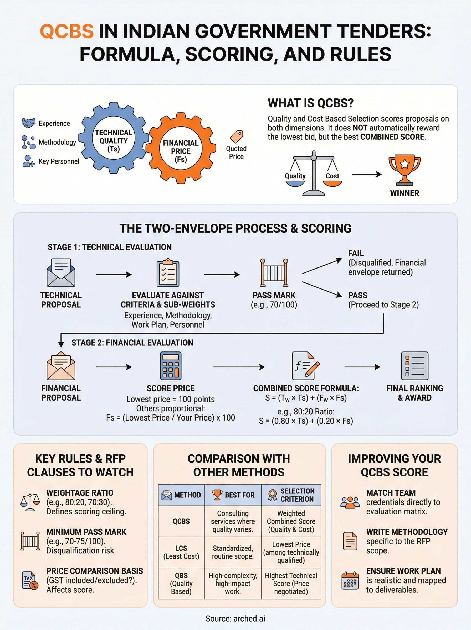 Learn the qcbs formula and scoring rules for Indian government tenders. Understand technical weightage and how to optimize your bid strategy to win.