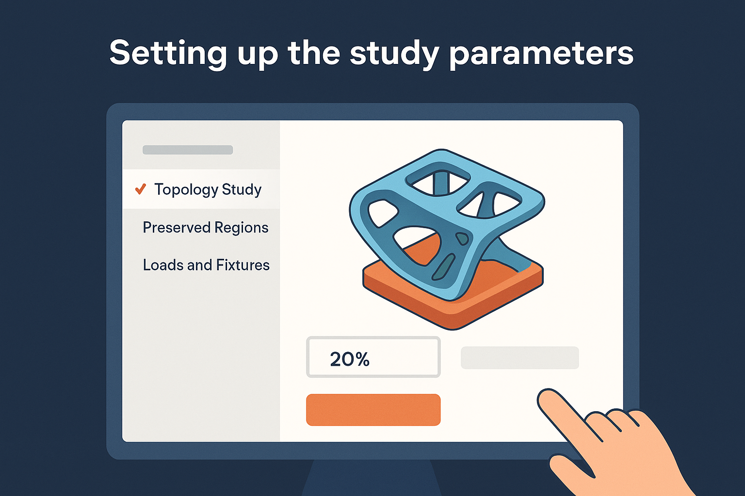 SOLIDWORKS generative design studies start from the Simulation tab once you have your maximum design space model ready. You create a new study by selecting Topology Study from the study type dropdown, which opens a configuration panel different from standard static analysis setups. The interface asks you to specify optimization goals, manufacturing methods, and regions that must remain untouched throughout the process. Each decision you make here directly controls what geometries the algorithm can explore.