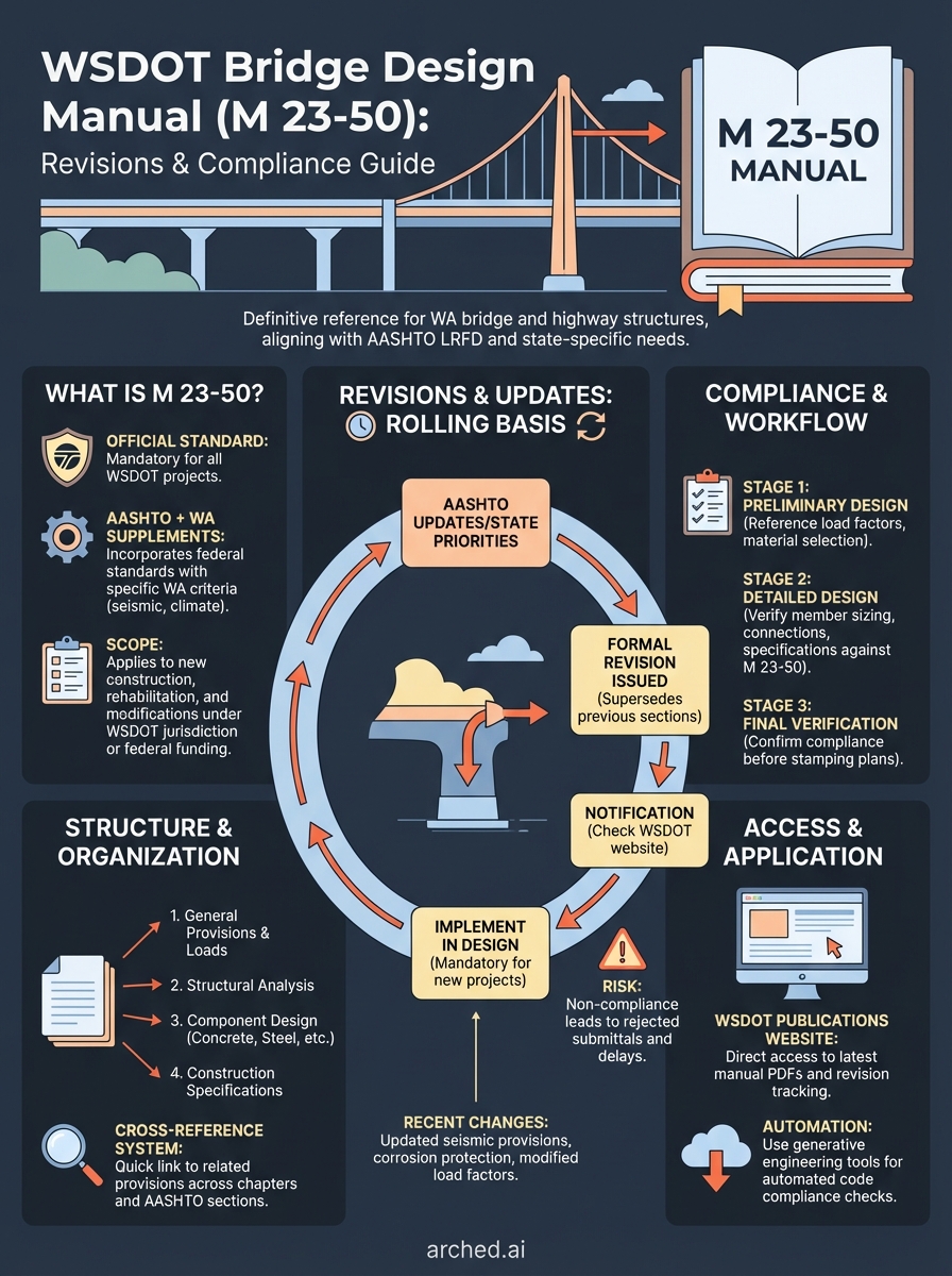 Navigate the latest WSDOT bridge design manual revisions. Learn how M 23-50 standards for seismic and climate conditions impact your engineering workflow.